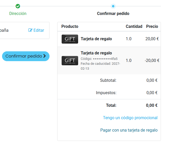 - Si tu tarjeta regalo es inferior al saldo de la compra, será necesario abonar la diferencia para efectuar el pedido.